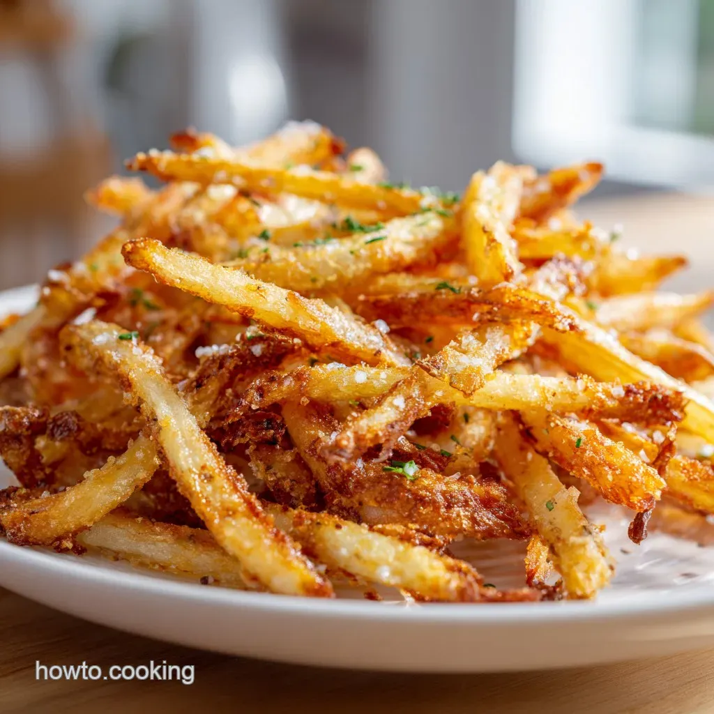 Toss the prepared fries with a splash of lemon juice immediately to stop them from turning an unappetizing brown color.