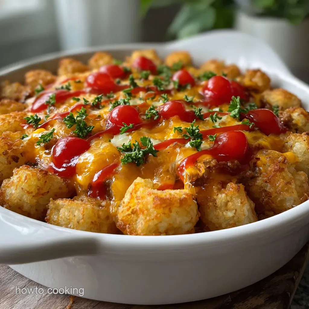 Slide the dish into a preheated oven at 400°F (200°C). Bake for 30 minutes until the tots are deeply golden and the cheese is bubbling through the gaps.
