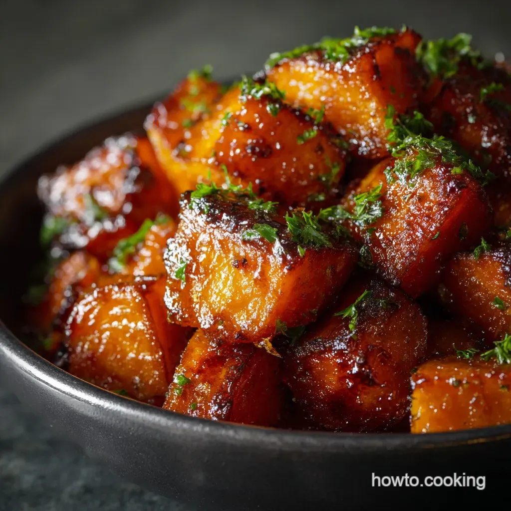 For true caramelization and crispy edges, never overcrowd your baking sheet; use two trays if necessary to ensure every cube has sufficient breathing room. To make this recipe entirely dairy-free, substitute the unsalted butter in the glaze with an equal measure of your favorite melted vegan butter spread.