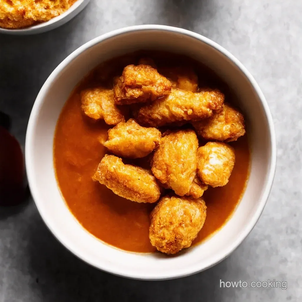 Next, artfully arrange the popcorn chicken bowl recipe on top. Finally, drizzle that luscious gravy all over, letting it seep into every nook and cranny.