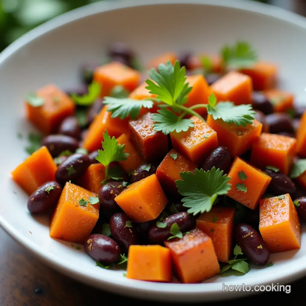 The real magic here lies in the flavour profile. We are pairing the deep, caramelized sweetness extracted from the slow roasting process of the sweet potatoes with black beans that have been lovingly simmered in a robust spice blend featuring chipotle chili powder.
