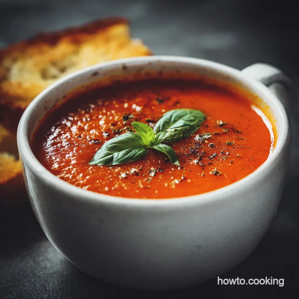 Roast fresh tomatoes, onions, and garlic with olive oil and seasonings. Combine with canned tomatoes, broth, and basil in a pot, simmer, then blend until smooth. Finish with milk and butter. This method ensures a deep, rich flavor profile.